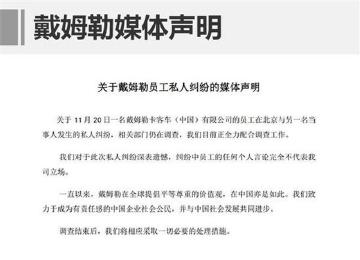 今日,戴姆勒官方针对员工辱华一事发表媒体声明,具体内容如下: