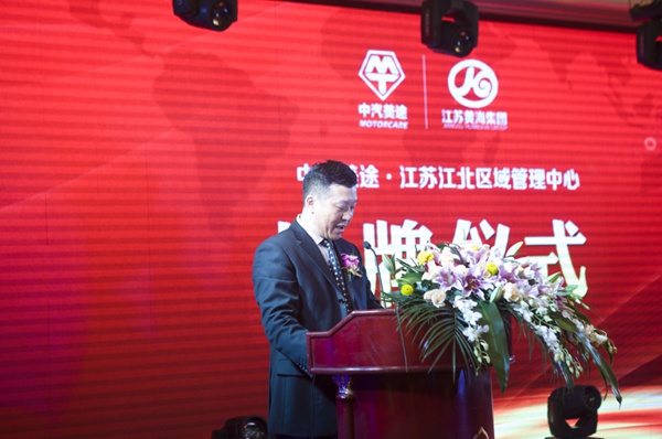中汽美途总经理陈可攀先生向中汽美途江苏江北区域管理中心总经理刘汉先生授牌
