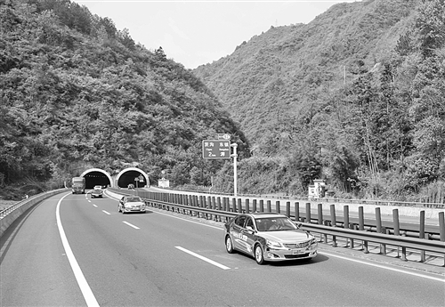上图 4月13日,长安无人驾驶汽车在穿越秦岭的高速公路上行驶,在山区路面进行隧道、桥梁、大弯道等无人驾驶技术测试。