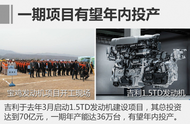 在发动机方面,宝鸡工厂1.5TD发动机建设项目于去年3月动工,其总投资达到70亿元,规划年产1.5TD发动机72万台。其中一期工程有望于年内建成投产,产能可达36万台/年。吉利1.5TD发动机由吉利与沃尔沃共同研发,将在吉利领克01中率先搭载。