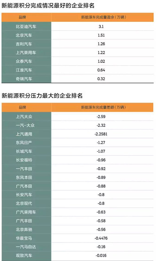 相关媒体统计“双积分”差距