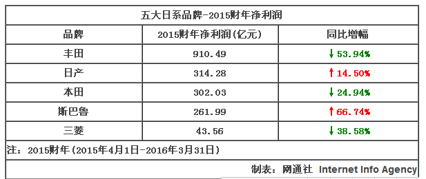 此次统计的五家日系品牌,包括丰田、本田、日产、斯巴鲁以及三菱(铃木没有公布财报);从上述数据中可以看到,2015财年净利润增速持续递增最显著的品牌是斯巴鲁,而在第二梯队中净利润保持正增长但实际盈利能力增速放缓的为日产,其他三家日系品牌均出现了不同程度的负增长。