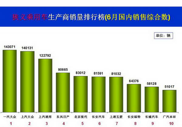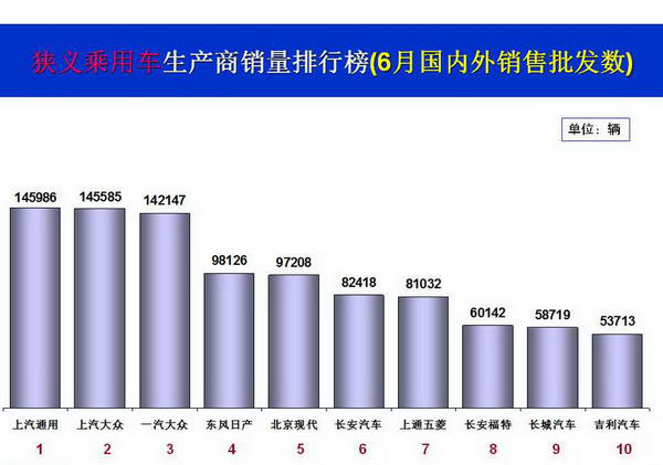 2016年6月轿车汽车销量排行榜正式出炉,上汽大众六月份月份以37869辆的销量成绩,毫无悬念地再次夺冠;朗逸作为上汽大众旗下的王牌车型。而6月东风日产销量已33489辆,超越一汽大众屈居亚军,代表车型轩逸。捷达换新之后,展现非凡的实力,6月销量达到32950辆,成功跻身排行版前三名。