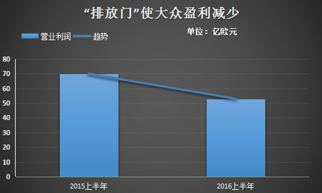 但是,如果计入处理“排放门”事件的相关支出,大众汽车上半年营业利润则相应下降22%,仅有53亿欧元。