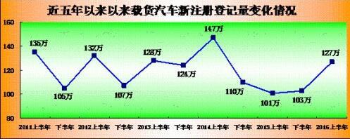 载货汽车保有量达2143万辆,上半年新注册量达127万辆。上半年,全国载货汽车保有量达2143万辆,与2015年底相比,增加71.8万 辆,增长3.47%。新注册登记量达127万辆,比去年同期提高26万辆,同比增长25.54%。从统计情况看,载货汽车新注册量自2014年下半年持续 走低以来,2016年上半年开始回升。