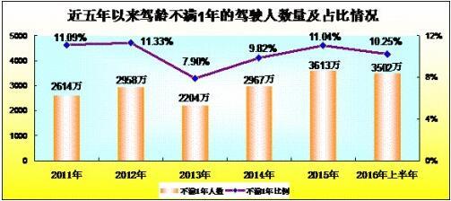 机动车驾驶人超3.4亿人,新领证1611万人。与机动车保有量快速增长相适应,机动车驾驶人数量也呈现持续高速增长趋势。上半年,全国机动车 驾驶人总量已超过3.4亿人,其中汽车驾驶人2.96亿人,占驾驶人总量的86.55%,新领证机动车驾驶人1611万人,其中新领证汽车驾驶人1500 万人。从统计情况看,2015年以来,驾龄不满1年的驾驶人超3500万,新领证驾驶人数量激增。