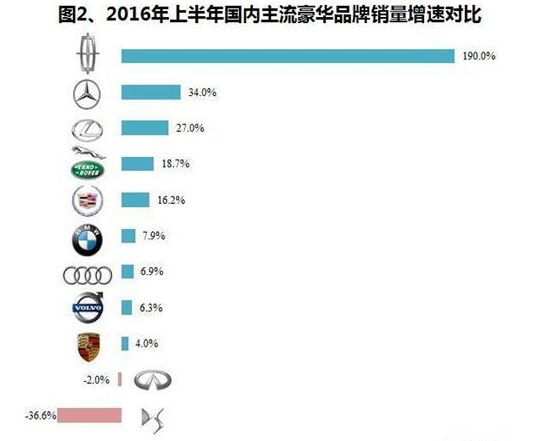 DS上半年在华销量骤降,被林肯取代了第十的位置,DS今年前6个月销量累计同比下跌36.6%至8,715辆。反观林肯,2016年上半年实现了三位数的增长至12,450辆,成为抢眼的“黑马”。