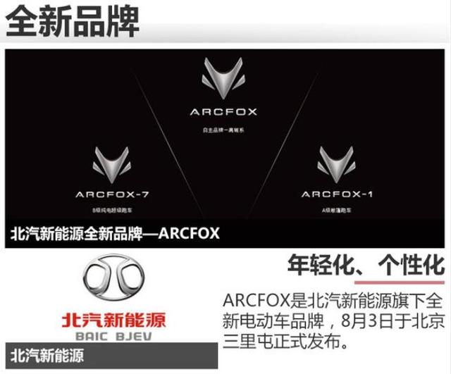 今年北京车展(微博)期间,北汽新能源曾展示旗下全新品牌“ARCFOX”,以及两款全新新能源车。“ARCFOX”品牌,由Arctic(北极)和Fox(狐)两个单词组合而来,强调对北极纯洁净土的热爱和追求速度极限、挑战自我的天性。