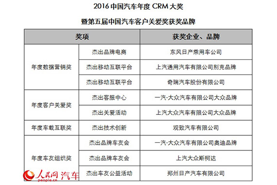 8月31日,“2016中国汽车年度CRM大奖评选暨第五届中国汽车客户关爱奖评选”颁奖典礼在京举行。9家车企分获年度数据营销奖、年度客户关爱奖、年度车载互联奖、年度车友组织奖四大奖项。