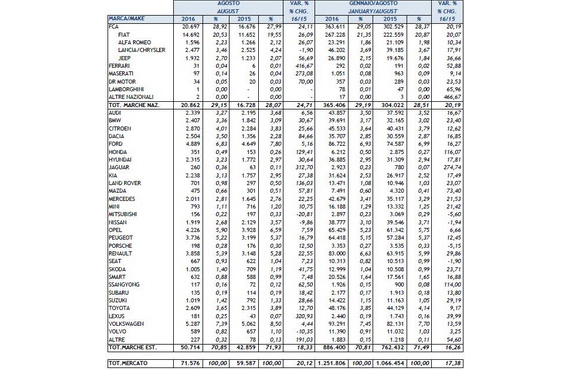 意大利汽车工业协会(ANFIA)近日公布,意大利8月乘用车注册量71,576辆,同比增长20.12%。