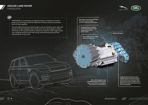 据悉,搭载该款变速箱的车型将拥有更佳的越野及操控表现,同时燃油经济性也将有10%的提升。捷豹路虎称,全新Transcend 8速双离合变速箱的研发投资达到了3000万英镑(约合人民币2.67亿元),预计未来其将被搭载于捷豹路虎旗下多款纵置发动机车型上。