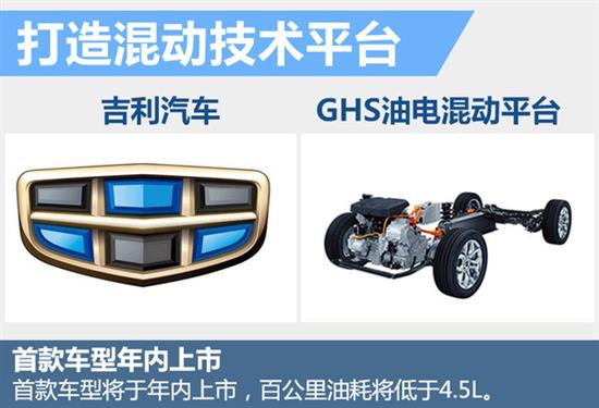 吉利汽车采用自主研发具备自主知识产权的GHS平台,行星齿轮功率分流系统,该系统是吉利汽车历经8年潜心研究,是全世界第一套单模输入复合动力分流系统。GHS油电混动系统将搭载在吉利汽车所有的A级车(首款车:帝豪EC7混合动力车型)上,具备纯电行驶、快速启停、制动能量回收以及包括行车发电和加速助力的混合动力行驶功能,整车百公里油耗仅为4.9升,节油率已达到35%。